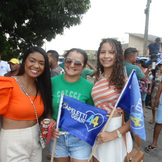 Durante o percurso pelas ruas do bairro, veículos e motos acompanharam a passeata, enquanto os candidatos interagiam com os moradores, trocando cumprimentos e reforçando o compromisso com a população,